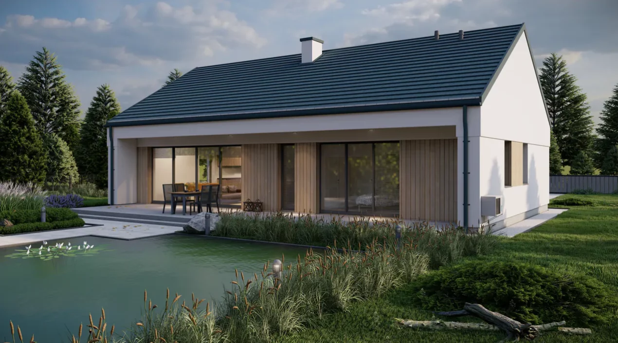 Dzięki optymalnej powierzchni użytkowej 100 m² Dom na Majowej stanowi ekonomiczne rozwiązanie zarówno pod względem kosztów budowy, jak i eksploatacji, spełniając jednocześnie najwyższe standardy wygody i funkcjonalności.