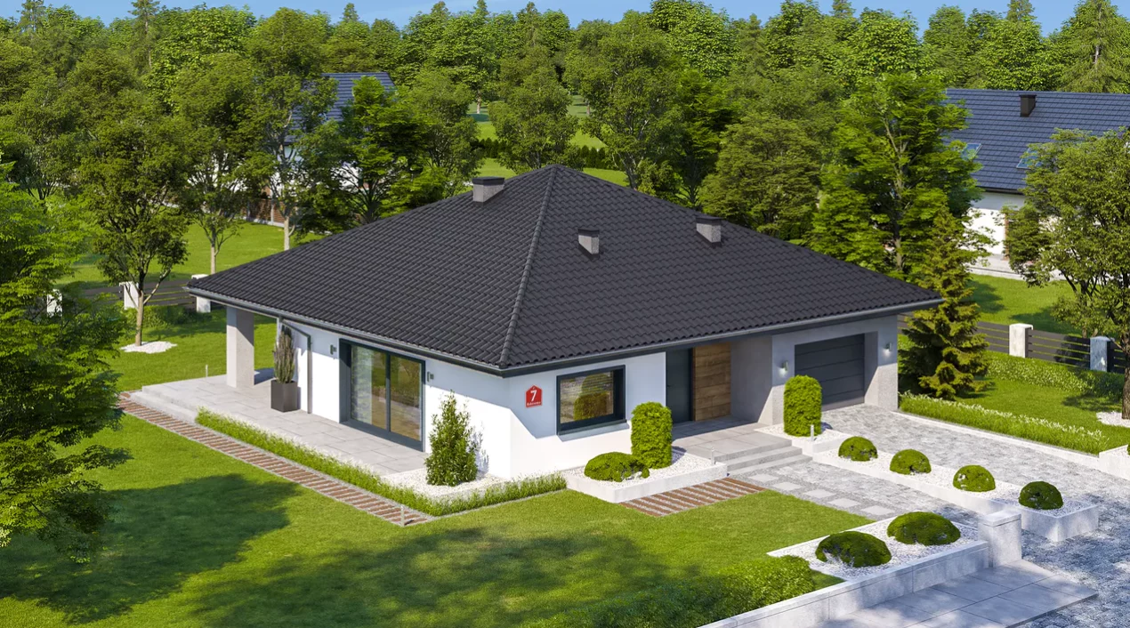 Dom przy Rubinowej 7 to idealne rozwiązanie dla rodzin poszukujących przytulnego, a zarazem praktycznego domu, który spełnia współczesne standardy energooszczędności. Przemyślany układ pomieszczeń i elegancka forma sprawiają, że projekt doskonale wpisuje się w różnorodne otoczenie i potrzeby inwestorów.
