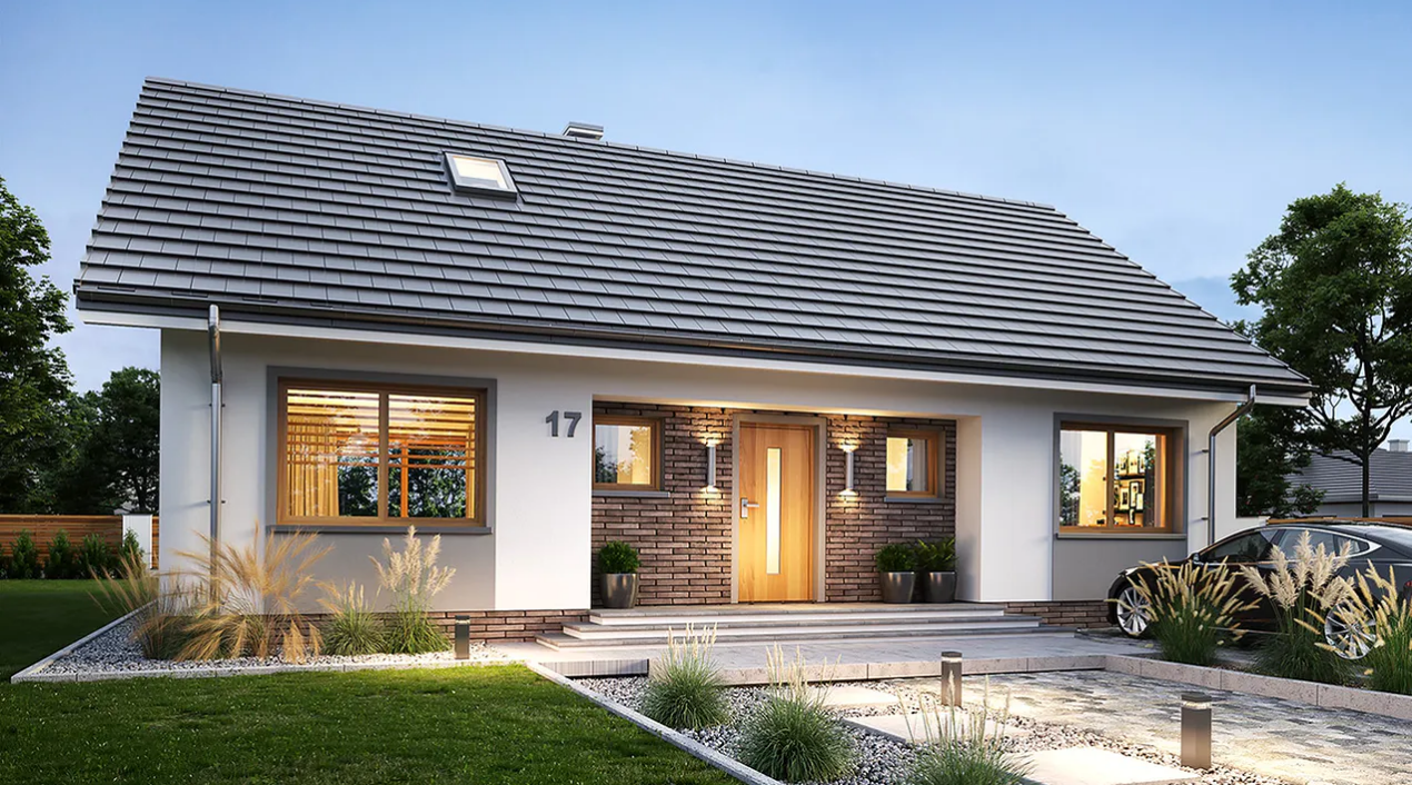Projekt domu Ekonomiczny 2 W to nowoczesny, parterowy dom jednorodzinny dla 3–4-osobowej rodziny. Prosta bryła na planie prostokąta, dwuspadowy dach oraz przemyślany układ wnętrz czynią go idealnym wyborem na wąskie i niedrogie działki. Wnętrze obejmuje jasny salon z kominkiem i dużym wyjściem na taras, otwartą kuchnię z praktyczną spiżarnią, 3 wygodne sypialnie, łazienkę, osobne WC, pralnię oraz kotłownię z osobnym wyjściem. Projekt spełnia aktualne wymagania energooszczędności (WT 2021), a prosta konstrukcja gwarantuje szybki i tani proces budowy. Dodatkowym atutem jest możliwość adaptacji poddasza na użytkowe. Dom Ekonomiczny 2 to funkcjonalne, kompaktowe i tanie w eksploatacji rozwiązanie dla osób ceniących prostotę i komfort.