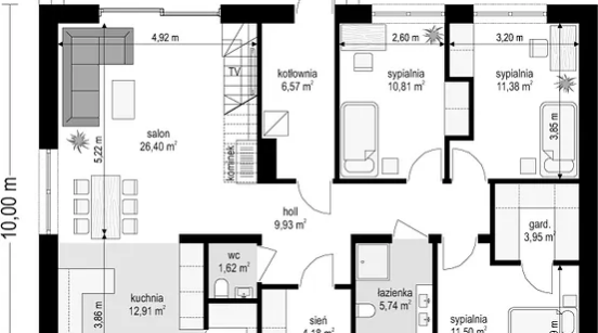 | Pokój dzienny + jadalnia | 26,40 m² |